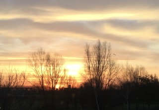 Bij een prachtige zonsopgang (misschien vanwege het meegewaaide Saharazand, wie weet) lopen het lief en ik een rondje te joggen door de polder. Zoals altijd probeer ik verwoed de vogelgeluiden te onthouden die ik hoor, vastbesloten om thuis op te zoeken van welk gevleugeld vriendje dat is.
